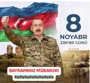 Zəfər günün mübarək, ay Vətən! Sənə ancaq ZƏFƏR yaraşır! Bayrağın uca, sevincin tükənməz, qururun ən qəlbi dağlardan da uca olsun! Dərələrində selin çağlasın, çayların kükrəsin, “Qara qızıl!, “Ağ qızıl”ın ağ günlərimizin sevincini yaşatsın!!!