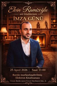 Tədbir 25 aprel 2026-cı il tarixində saat 11:00-da Bərdə Mərkəzləşdirilmiş Elektron Kitabxanasında baş tutacaq. Oxucular bu görüşdə müəlliflə yaxından tanış olmaq, onun yaradıcılığı ilə bağlı söhbət aparmaq və sevdikləri kitabları imzalatmaq imkanı əldə edəcəklər.
